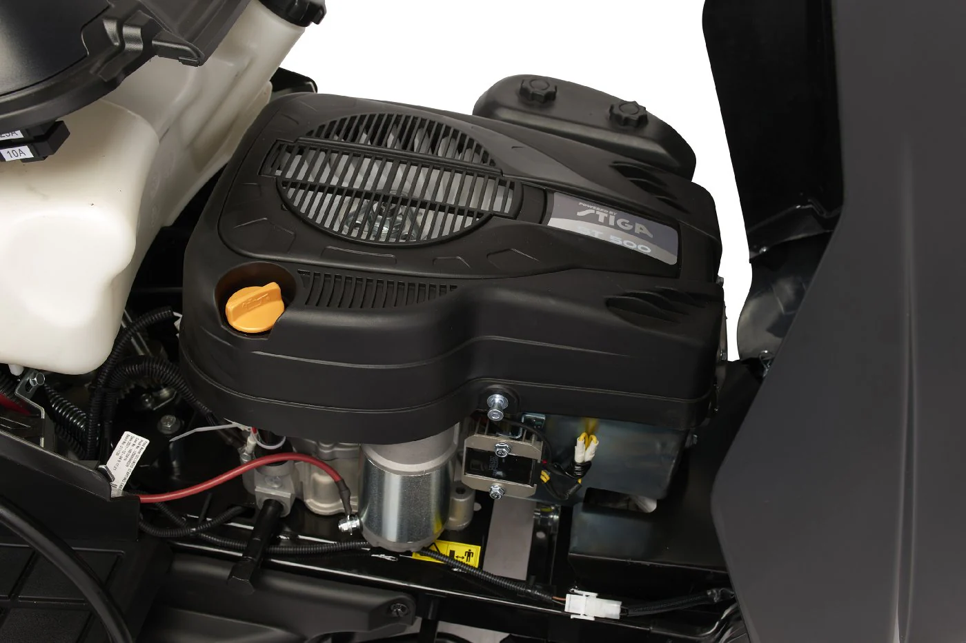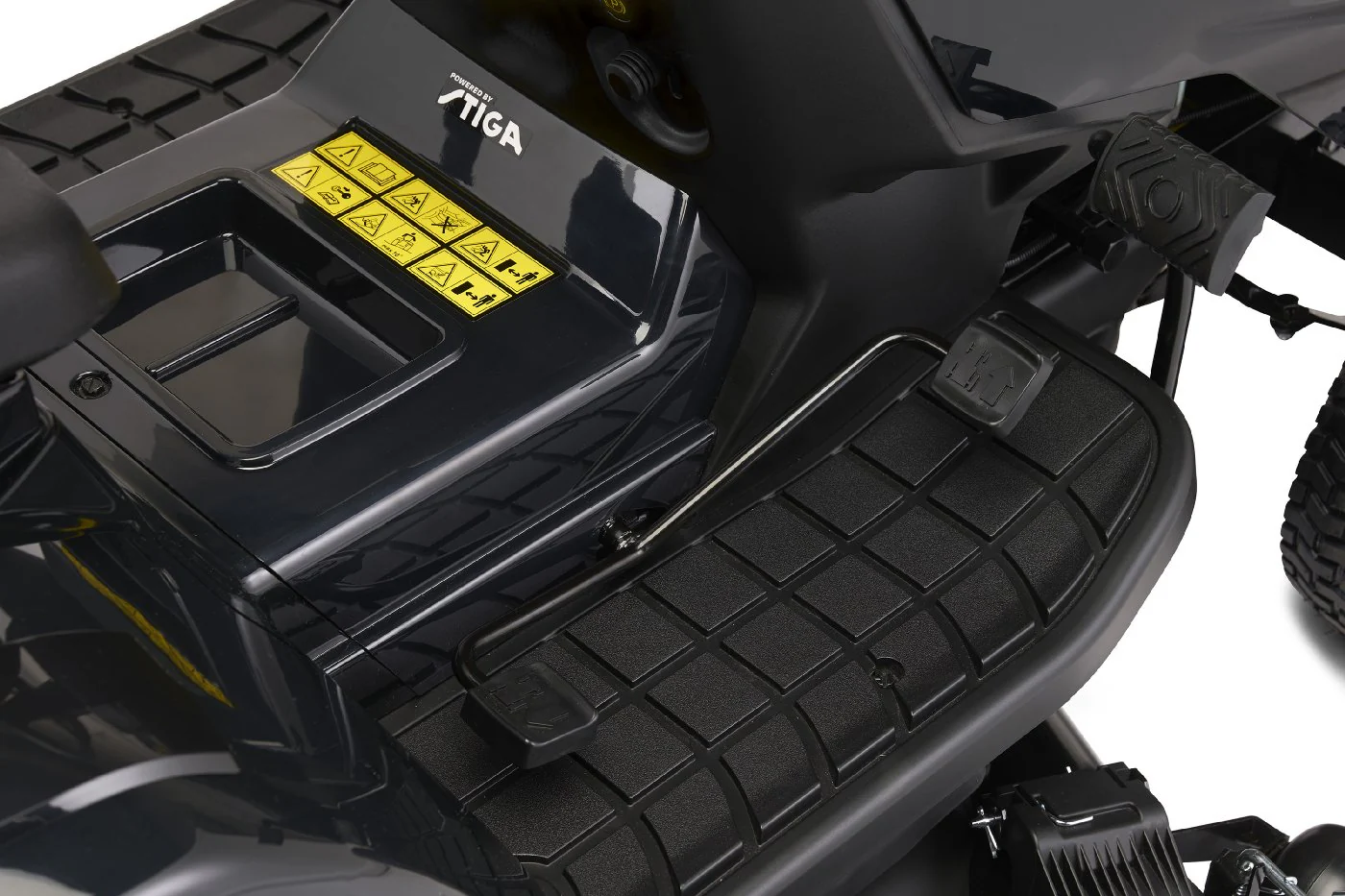 | Die serienmäßig im Lieferumfang enthaltene robuste Stoßstange schützt verlässlich die Motorhaube des Rasentraktors | |