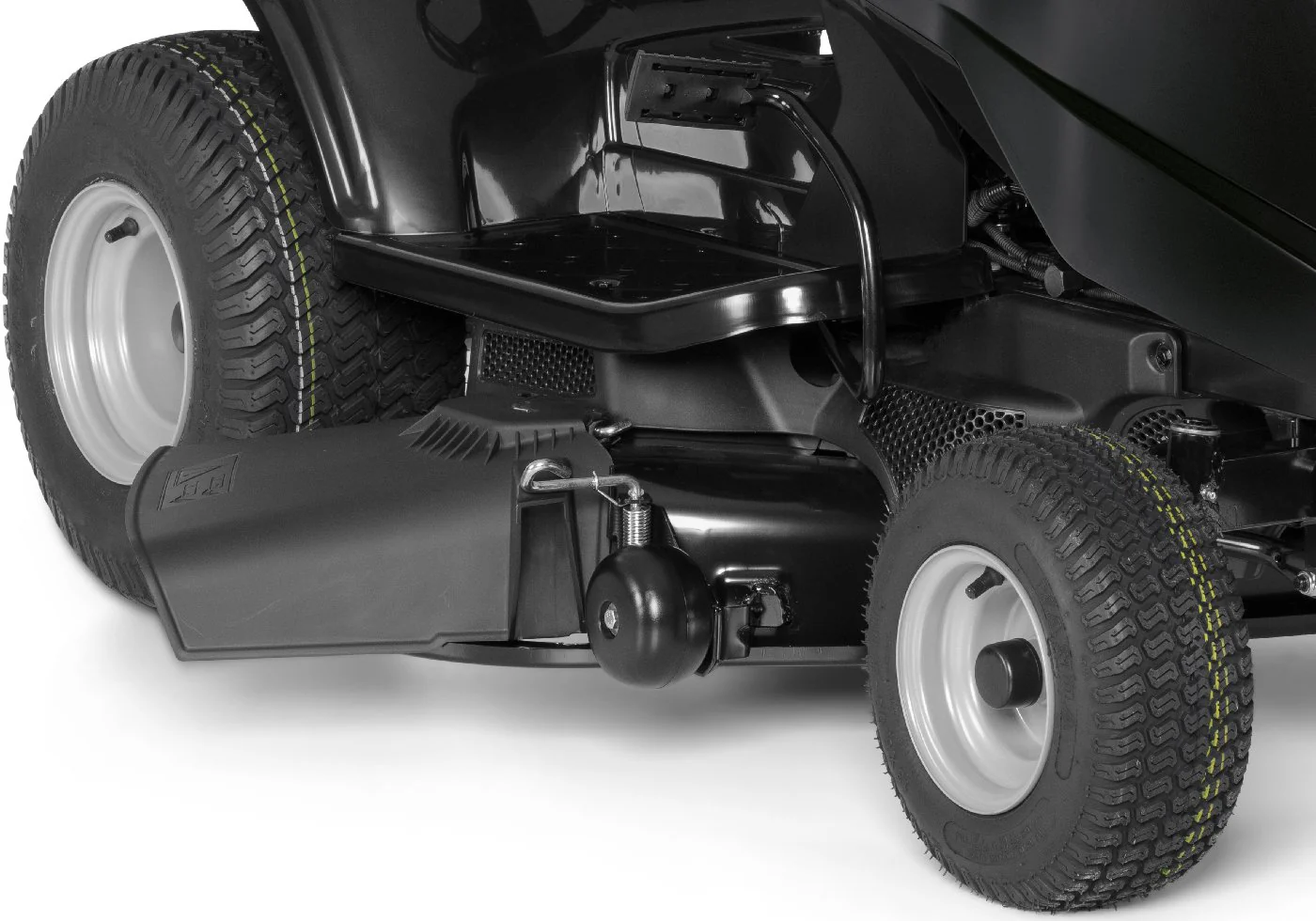| Die serienmäßig im Lieferumfang enthaltene robuste Stoßstange schützt verlässlich die Motorhaube des Rasentraktors | |