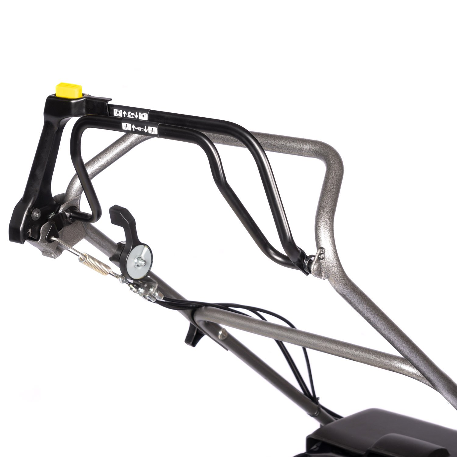 Roto-Stop®: Mit dem Roto-Stop®-System können Sie die Mähmesser schnell und sicher anhalten, ohne den Motor abstellen zu müssen. Ideal, wenn Sie den Grassack leeren, Hindernisse wegräumen oder Wege und Einfahrten überqueren müssen.