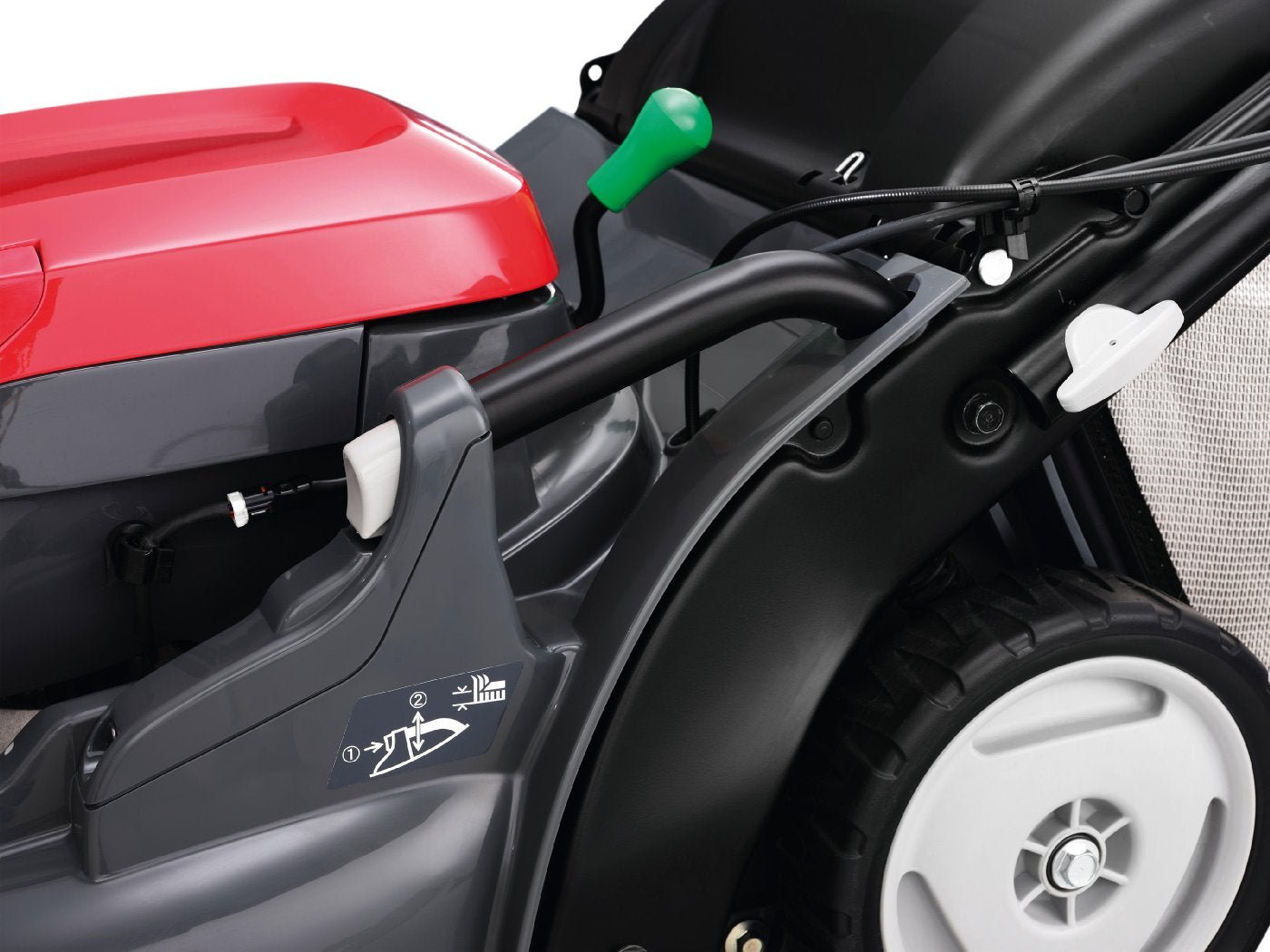 | Dank der zentralen Schnitthöhenverstellung kann die Schnitthöhe ganz einfach mit nur einem Griff angepasst werden. | |