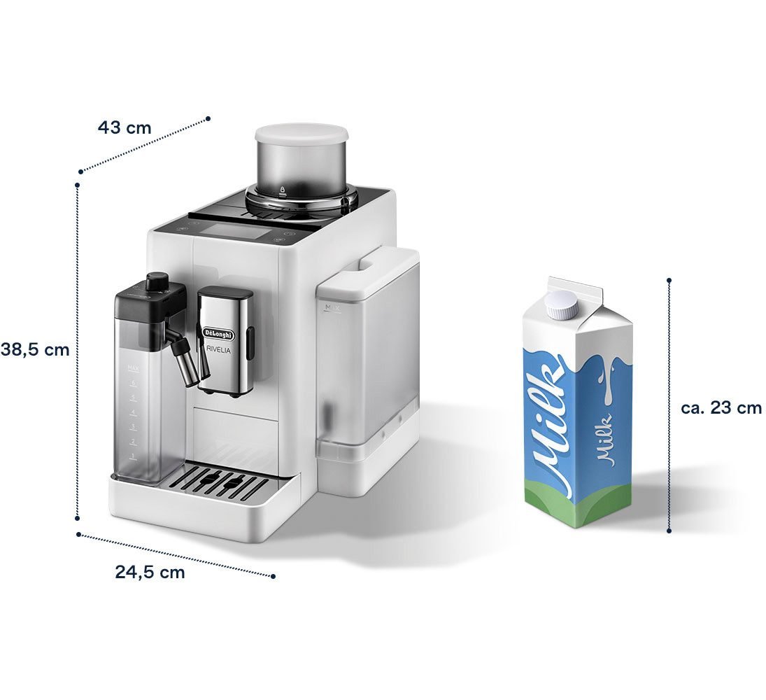 | eitere Vorteile | AUF EINFACHHEIT AUSGELEGT: Ein großartiger Kaffeevollautomat von De’Longhi im bisher kompaktesten Format. Die Kerntechnologie wurde vollständig überarbeitet, um eine hochmoderne Maschine in einem sehr kompakten Gehäuse mit einer neuen Designsprache unterzubringen. COFFEE ROUTINES: Mit bis zu vier Benutzerprofilen können alle Getränke auf den individuellen Geschmack angepasst werden. Mit der neuen Funktion Coffee Routines lernt die Rivelia deine Gewohnheiten und passt das Kaffee Menü im Laufe des Tages an – abgestimmt auf deine persönlichen Vorlieben. EINFACHE REINIGUNG. Automatischer Spülvorgang nach jeder Kaffeezubereitung. Die Entkalkung wird nach einer vorab festgelegten Betriebszeit fällig – die Rivelia kann auch mit dem mitgelieferten Teststreifen auf die Wasserhärte eingestellt werden. Zur einfachen Reinigung und Wartung ist die hochwertige Brühgruppe herausnehmbar. Die Abtropfschale kann bedenkenlos in der Spülmaschine gereinigt werden. Funktion „Extra Shot“ für einen zusätzlichen Koffeinkick INTUITIVE BEDIENUNG:Tauchen Sie mit dem farbigen Fulltouch-Display der Rivelia in die Welt des Kaffees ein und entdecken Sie mit einer Wischbewegung die große Getränkeauswahl. Mit den Kaffeeroutinen passt die Rivelia Ihr Kaffeemenü den ganzen Tag über an Ihren Geschmack an. Integriertes Mahlwerk mit externem Mahlgradregler mit 13 Einstellungen |