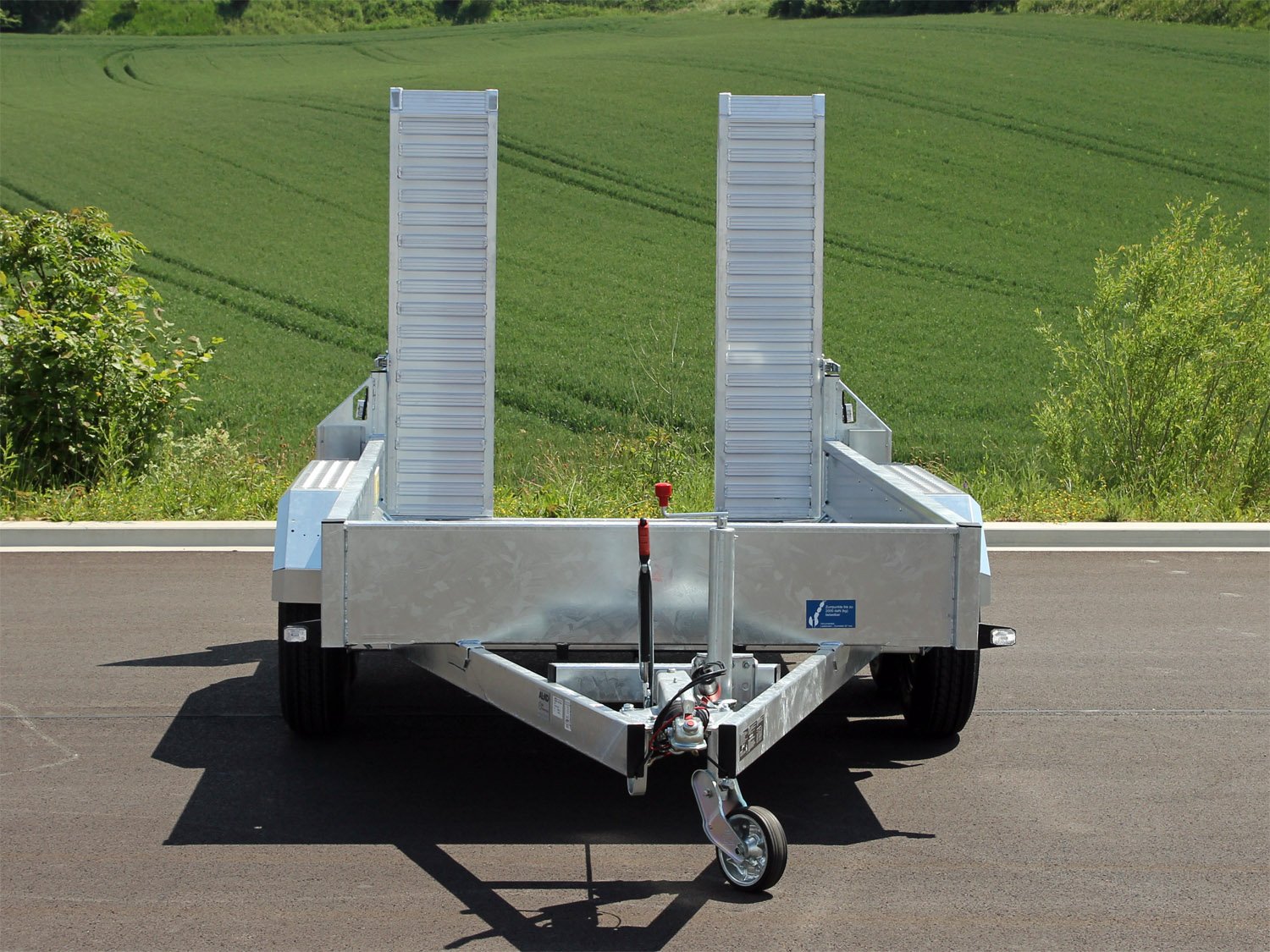 - 2 Stück abklappbare und seitenverstellbare Alu Auffahrrampen mit integrierter Bodenabstützung, mit einer Tragkraft von 3500 k